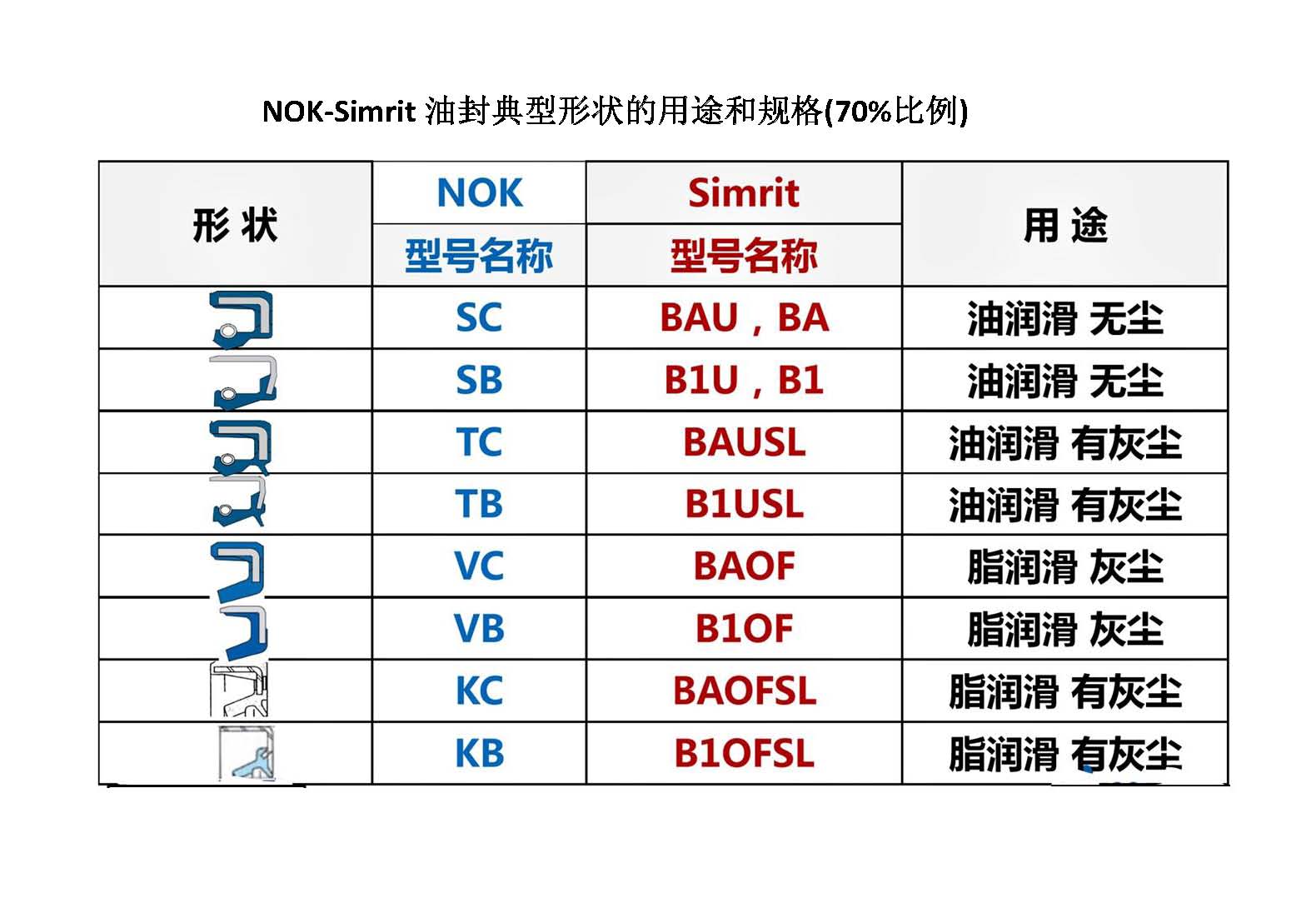 NOK-Simrit油封典型形狀的用途和規格(70%比例)