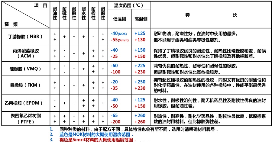 旋轉油封的彈簧及金屬骨架材料的種類及適用介質