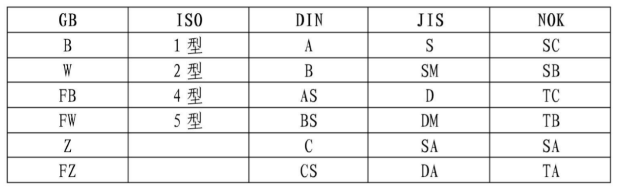 油封結構標注各國標準對照表